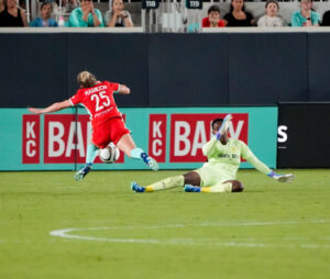 After a bit of a slowdown and a hydration break, the Mamelodi Sundowns were next to test a keeper. From about 40 yards out Schult had to stretch to make a save and keep KC ahead. Little did she know it would be the only real test of her night.