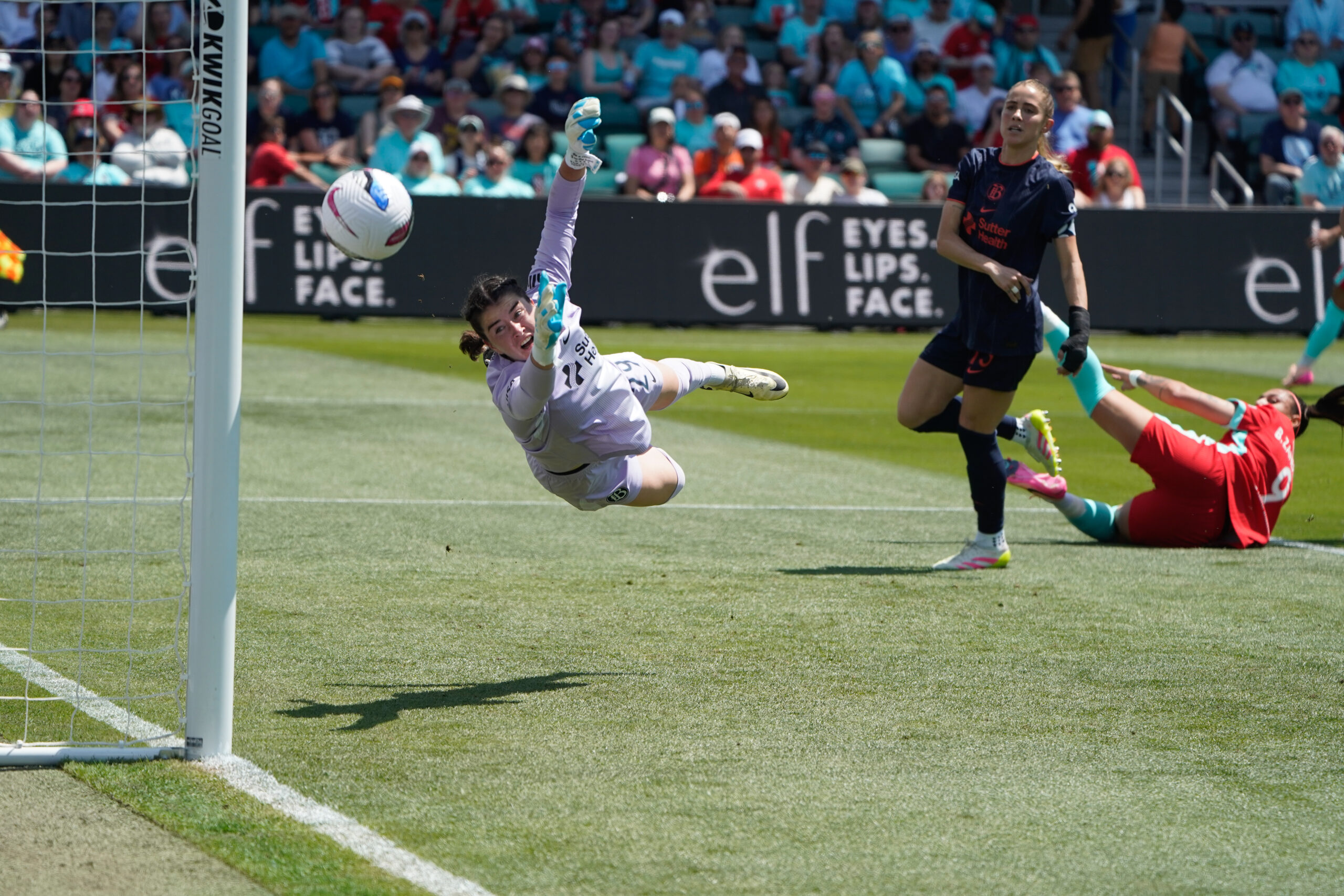 It looked like Bay were going to get an amazing chance not too long after the subs when Racheal Kundananji was on a break and the turf monster got her. She had Mace on her heels until she fell down and killed the attack. Bay FC finally went to the bench after that, making a triple sub. One of the subs was the first ever Kansas City Current draft pick, Kiki Pickett.
